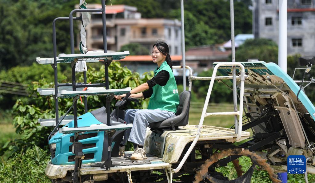 9月13日,在廣州市增城區石灘鎮石湖村的石鄉農機專(zhuān)業(yè)合作社,沈笑芬駕駛農機。