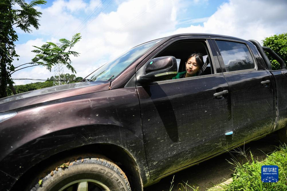 9月13日,位于廣州市增城區石灘鎮石湖村,沈笑芬在機耕路上邊駕駛工作車(chē),邊觀(guān)察道路。