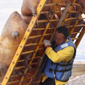 羊皮筏子承擔著(zhù)黃河兩岸一代代人的勞動(dòng)、生活、交通運輸的使命,見(jiàn)證了黃河歷史文化。作為筏子客,牛強認為他們僅僅是傳承了老祖先留下來(lái)的手工藝。然而,制作保養羊皮筏子的高成本和繁瑣流程讓這門(mén)技藝越來(lái)越“孤獨”。牛強介紹,從挑選五至六歲的公山羊開(kāi)始,羊皮筏子的制作周期至少需要三個(gè)月。制作完成后,還要定期進(jìn)行灌水灌油灌鹽和吹氣保養。這項被甘肅省列為非物質(zhì)文化遺產(chǎn)的傳承人已寥寥可數,43歲的牛強是最年輕的一位,年紀最大的已經(jīng)90多歲。