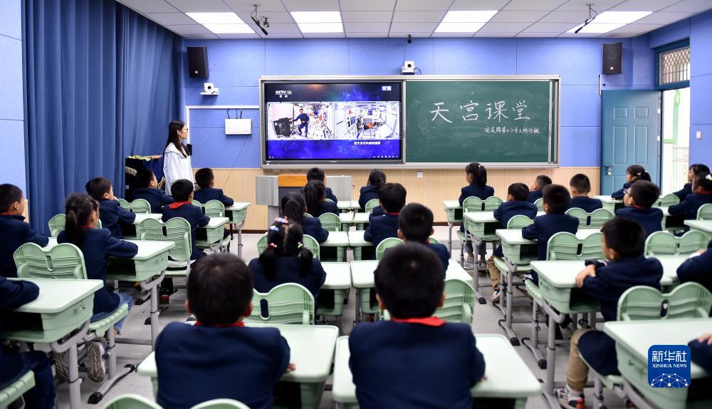 9月21日,在安徽省合肥市安慶路第三小學(xué)大楊分校,學(xué)生收看“天宮課堂”第四課。