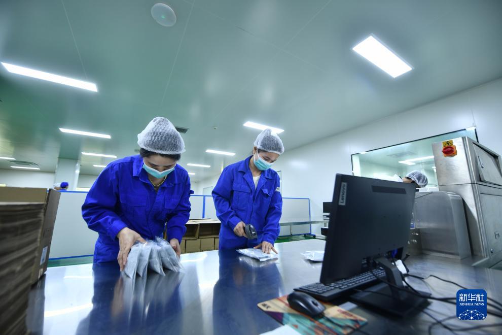 9月21日,在廣西柳藥集團股份有限公司,工人在生產(chǎn)線(xiàn)上作業(yè)。