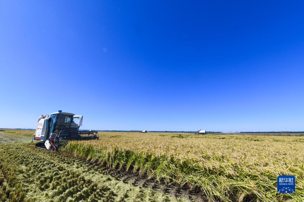 這是9月21日在位于雙鴨山市友誼縣的北大荒農業(yè)股份有限公司友誼分公司一地塊拍攝的水稻收獲現場(chǎng)。