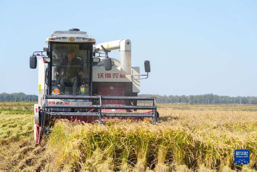 這是9月21日在位于雙鴨山市友誼縣的北大荒農業(yè)股份有限公司友誼分公司一地塊拍攝的水稻收獲現場(chǎng)。