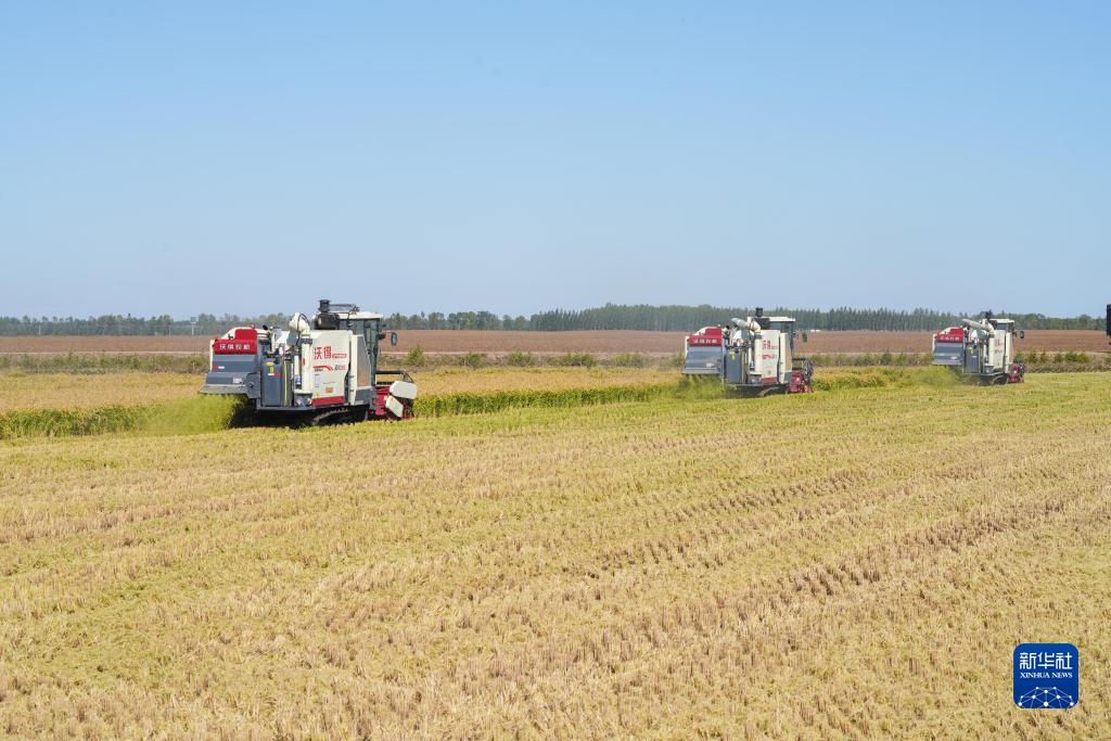 這是9月21日在位于雙鴨山市友誼縣的北大荒農業(yè)股份有限公司友誼分公司一地塊拍攝的水稻收獲現場(chǎng)。