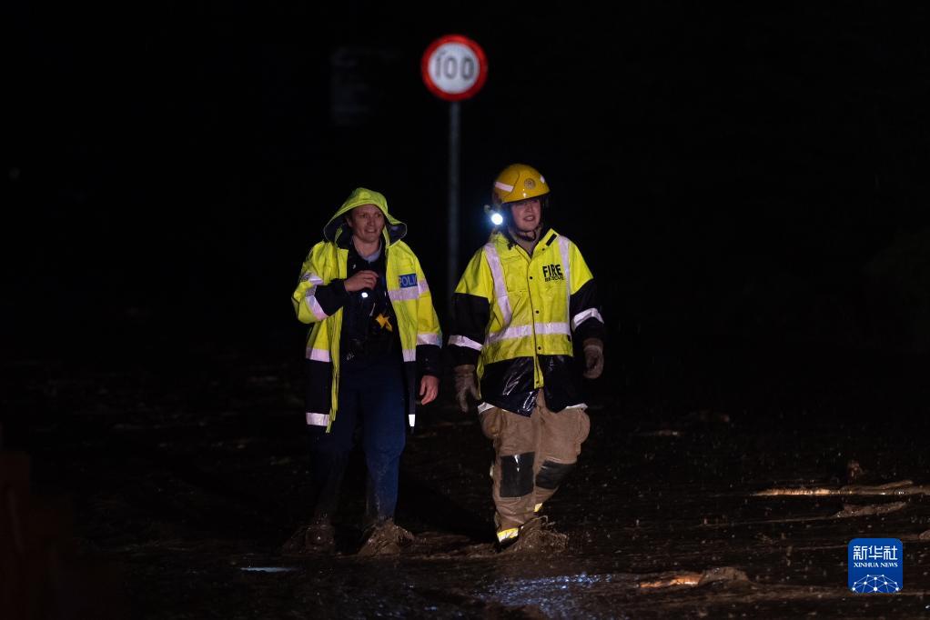 9月21日晚,工作人員在新西蘭南島昆斯敦巡檢道路。