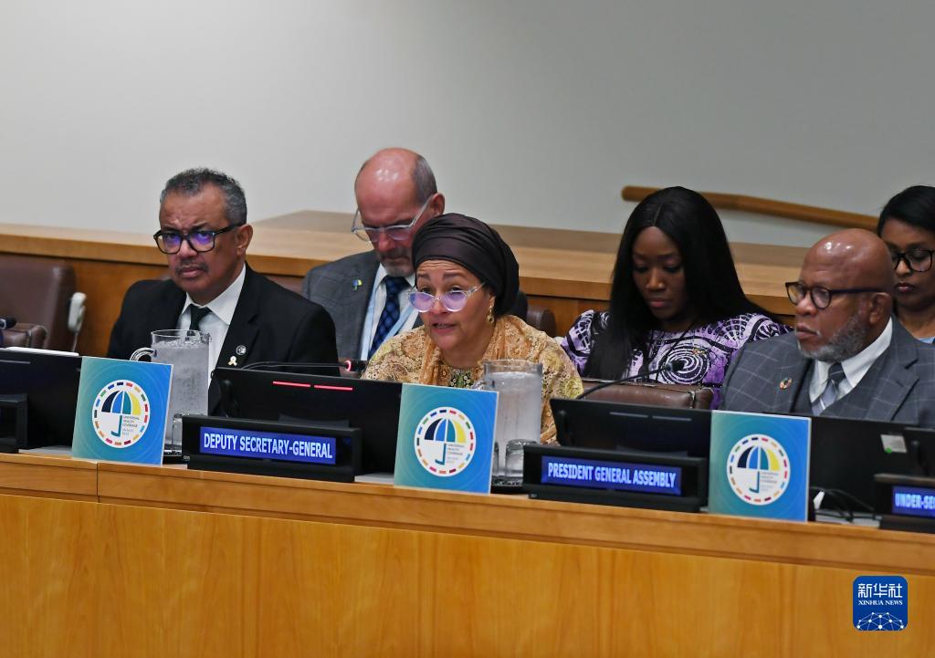 9月21日,在位于紐約的聯(lián)合國總部,聯(lián)合國常務(wù)副秘書(shū)長(cháng)阿明娜·穆罕默德(前排中)代表聯(lián)合國秘書(shū)長(cháng)古特雷斯在會(huì )議上發(fā)言。