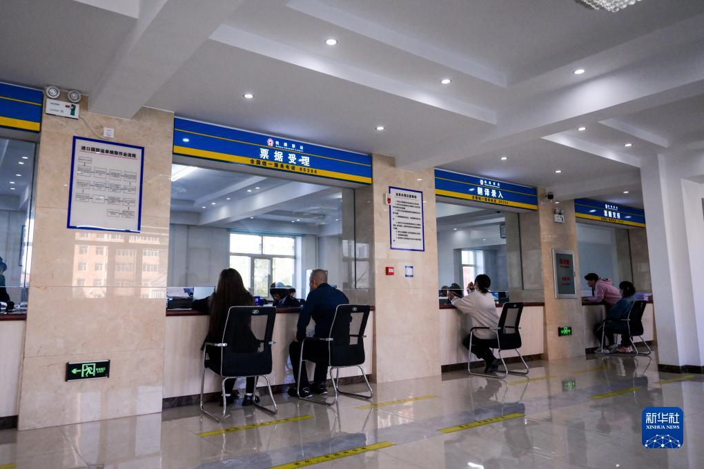 9月21日,在滿(mǎn)洲里站國際聯(lián)運貨物交接所營(yíng)業(yè)廳,貨運代理公司工作人員在辦理中俄鐵路貨運業(yè)務(wù)。