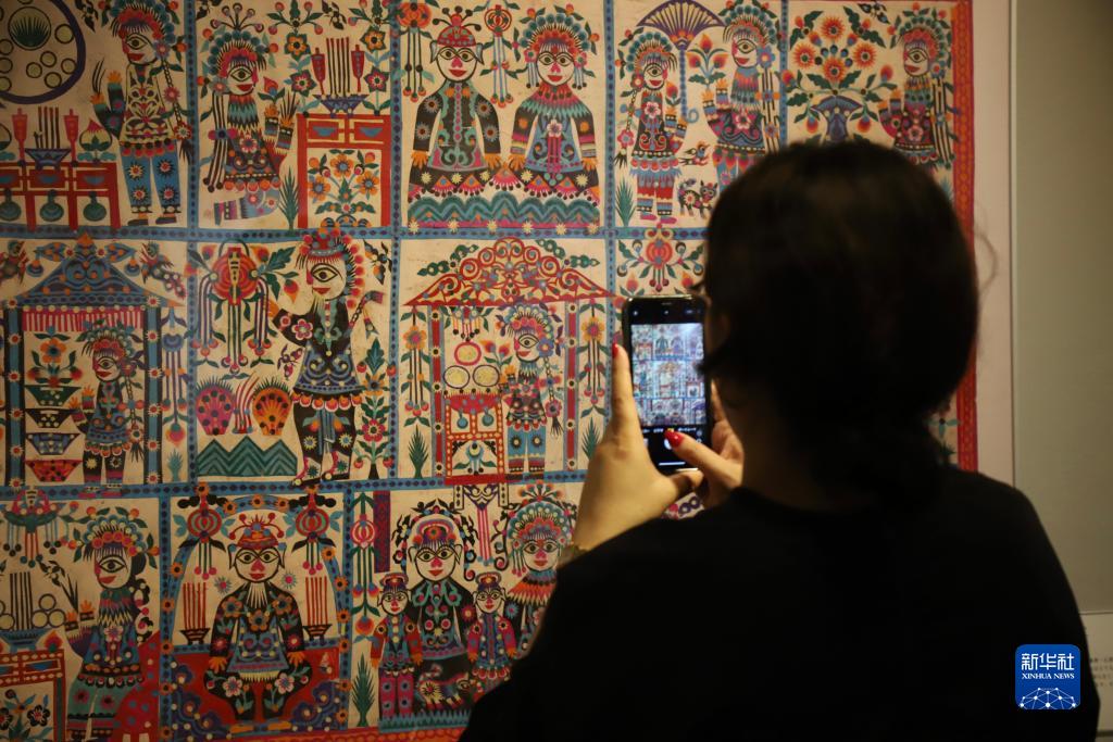9月21日,一名參觀(guān)者在日本東京舉行的庫淑蘭剪紙藝術(shù)展預展上拍照。