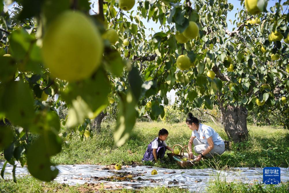 9月22日,游客在趙縣樂(lè )植堂梨果種植專(zhuān)業(yè)合作社的梨園內采摘雪花梨。新華社記者 牟宇 攝