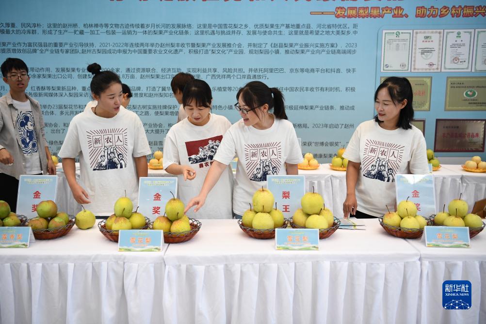 9月22日,客商在趙縣舉辦的梨果產(chǎn)業(yè)發(fā)展推介會(huì )上參觀(guān)。新華社記者 牟宇 攝