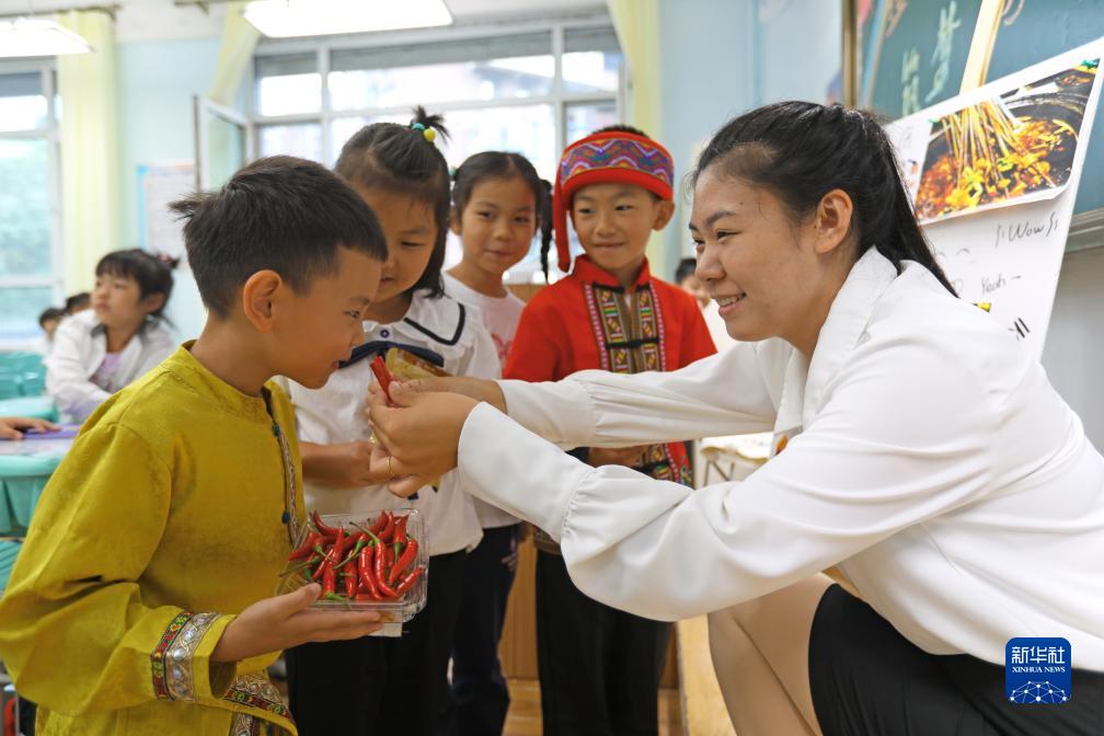 當日,遼寧省沈陽(yáng)市南京一校長(cháng)白島一分校舉辦以“豐收文化節”為主題的校園活動(dòng),老師帶領(lǐng)孩子們創(chuàng )作豐收節的藝術(shù)作品,了解豐收傳統民俗。