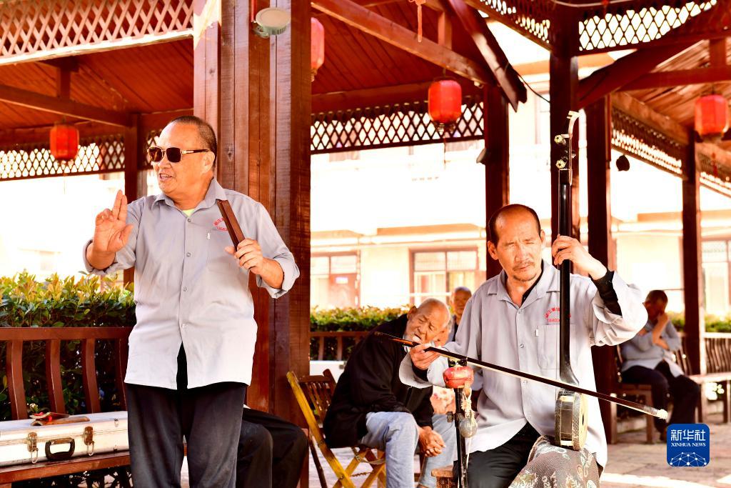 9月22日,在鄆城縣楊莊集鎮綜合養老服務(wù)中心,老人們在彈唱。