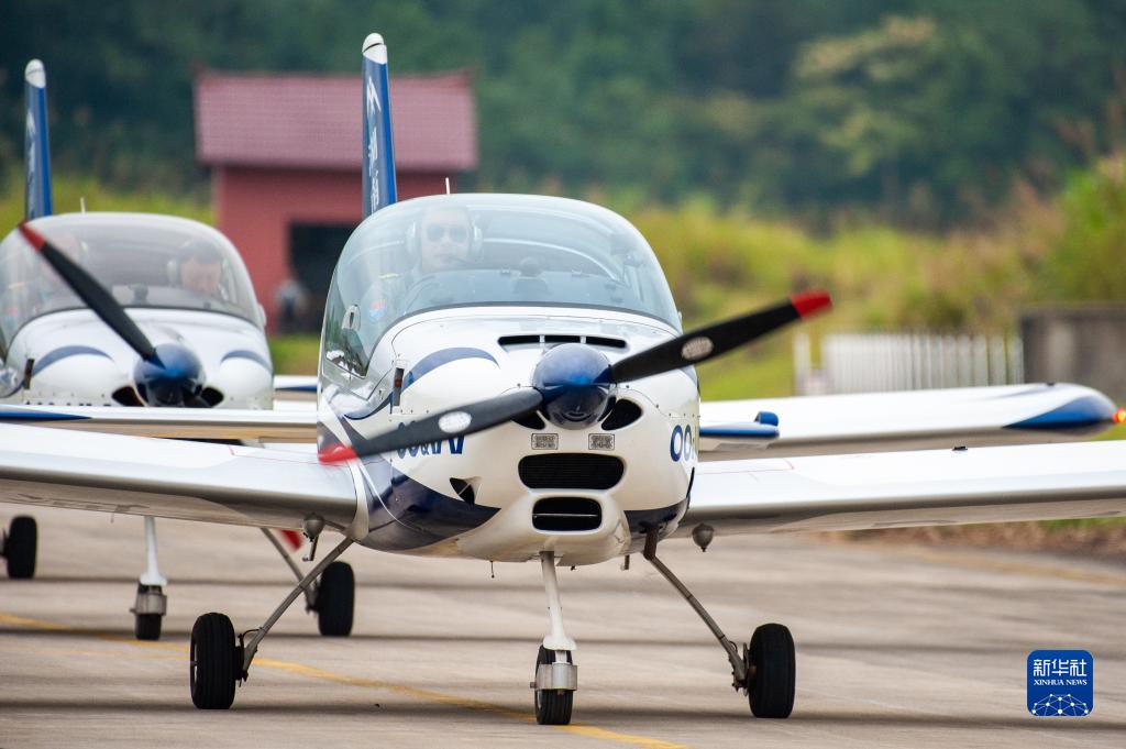 9月22日,在湖南株洲蘆淞機場(chǎng),飛行員駕駛固定翼飛機在表演結束后返回跑道。