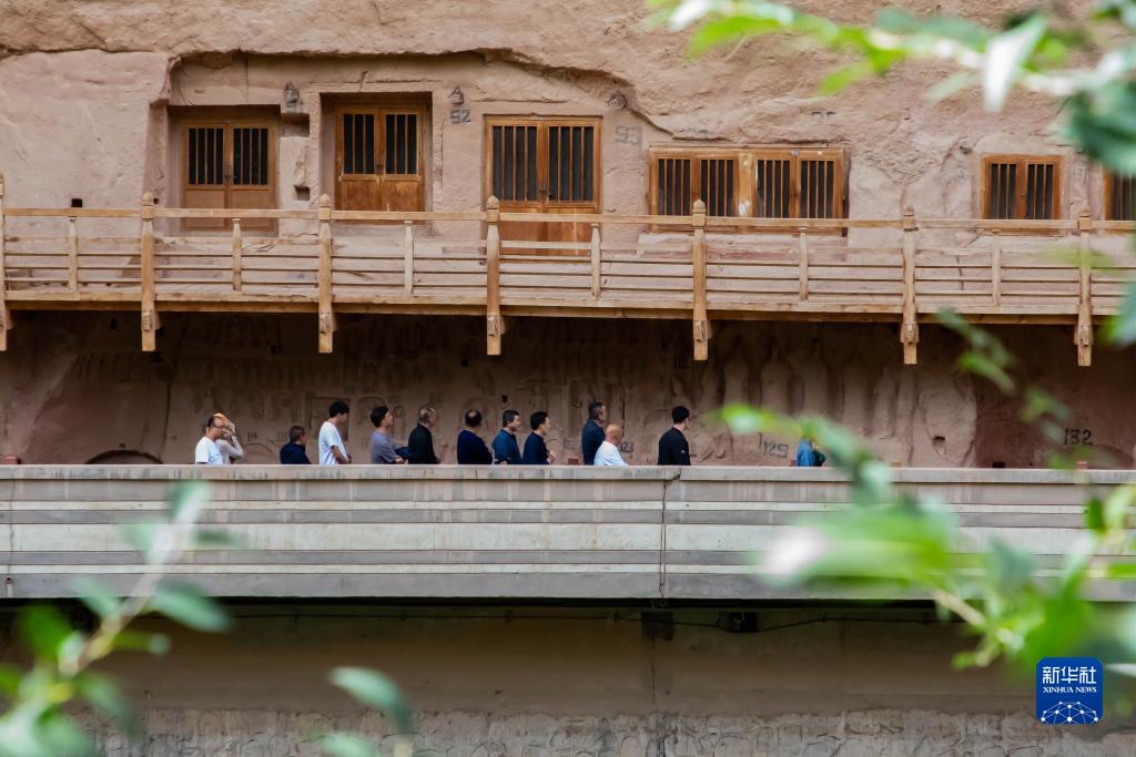 9月21日,游客在炳靈寺石窟參觀(guān)。