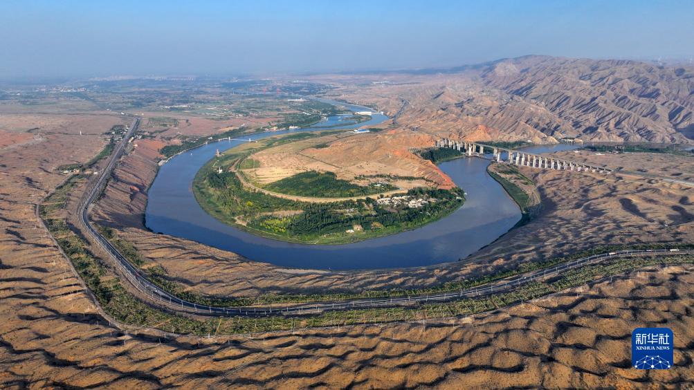 這是流經(jīng)寧夏中衛市沙坡頭區的黃河(9月6日攝,無(wú)人機照片)。