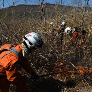 9月22日,消防人員在巴西巴伊亞州里亞尚-達斯內維斯附近進(jìn)行滅火作業(yè)。