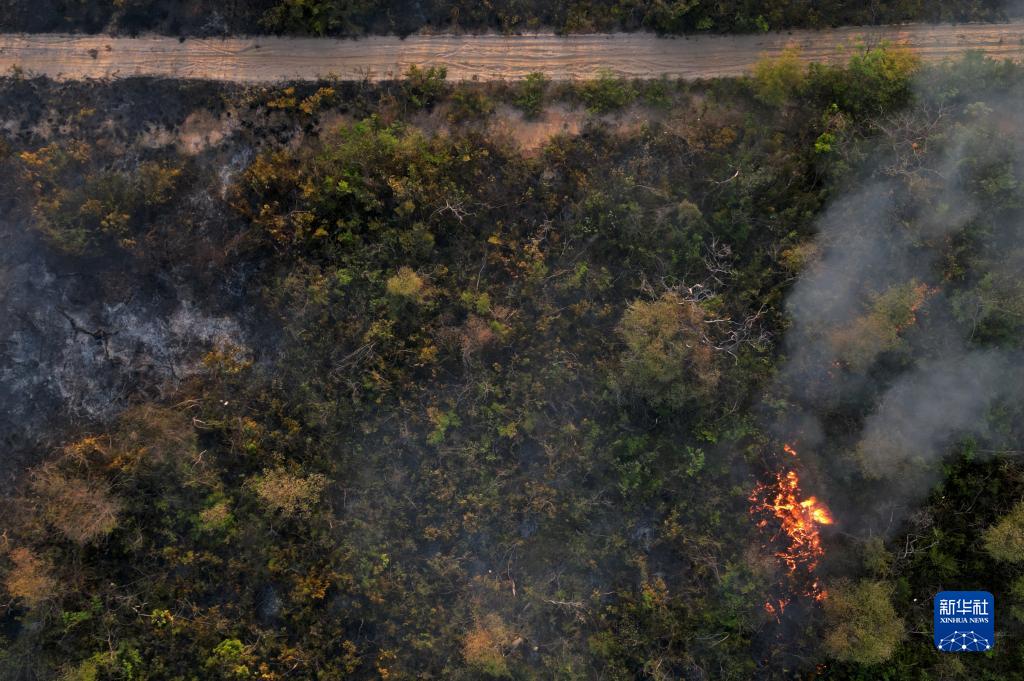 這是9月21日在巴西巴伊亞州巴雷拉斯市附近拍攝的森林火災現場(chǎng)(無(wú)人機照片)。