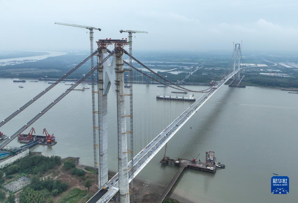 9月23日拍攝的南京仙新路過(guò)江通道跨江大橋(無(wú)人機照片)。