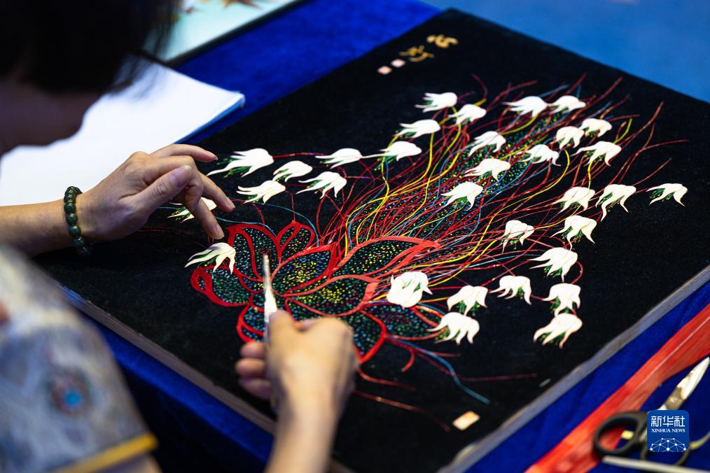 9月21日,選手劉榮萍在現場(chǎng)展示民間美術(shù)麥稈畫(huà)技藝。