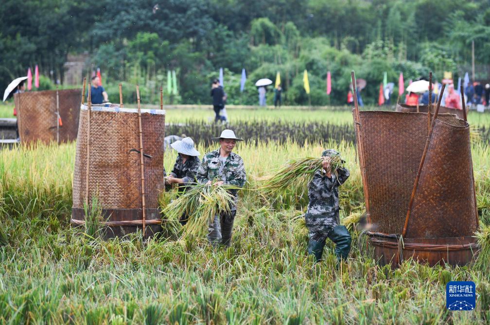 當日,重慶市2023年中國農民豐收節慶?;顒?dòng)在璧山區七塘鎮將軍村舉行。慶?;顒?dòng)以“慶豐收 促和美”為主題,開(kāi)展水稻收割、趣味摸魚(yú)、民俗和歌舞表演、特色農產(chǎn)品展銷(xiāo)等系列活動(dòng)。
