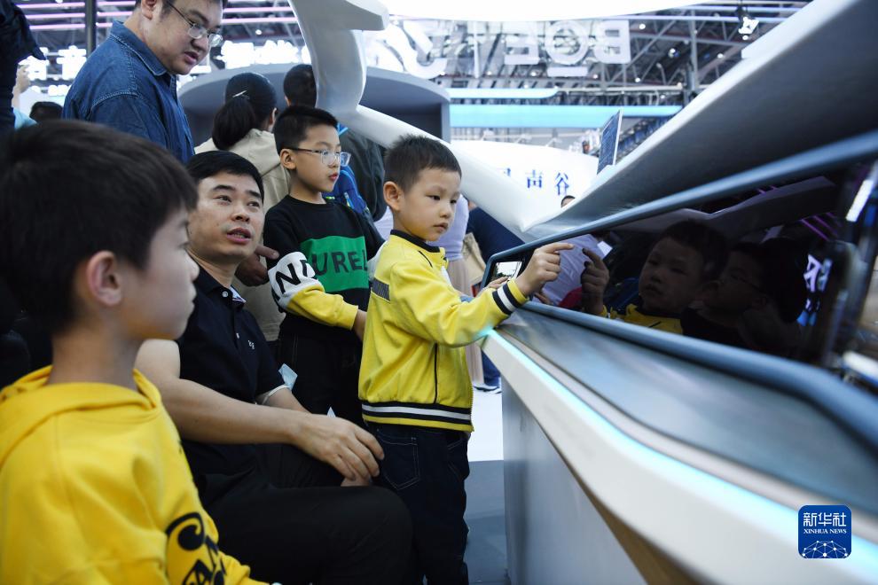 9月23日,在2023世界制造業(yè)大會(huì )上,小朋友近距離感受智慧車(chē)載駕艙。