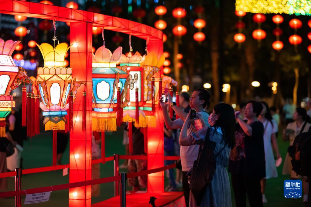 9月23日,人們在香港維多利亞公園參觀(guān)中秋彩燈會(huì )。