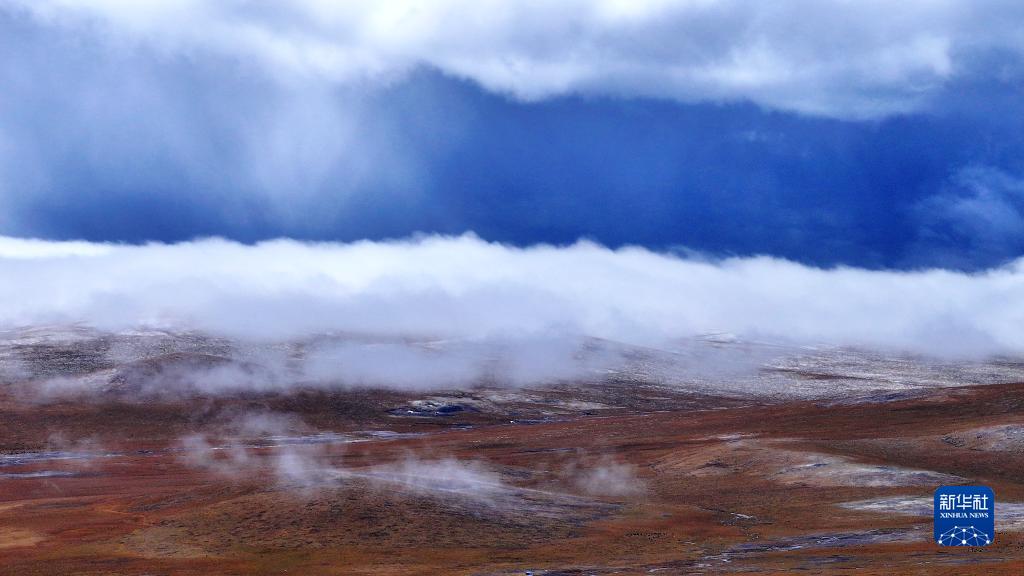 金秋時(shí)節,在位于三江源地區的青海省玉樹(shù)藏族自治州境內,雪山、草原、云海、牛羊組成一幅壯美的秋日畫(huà)卷。
