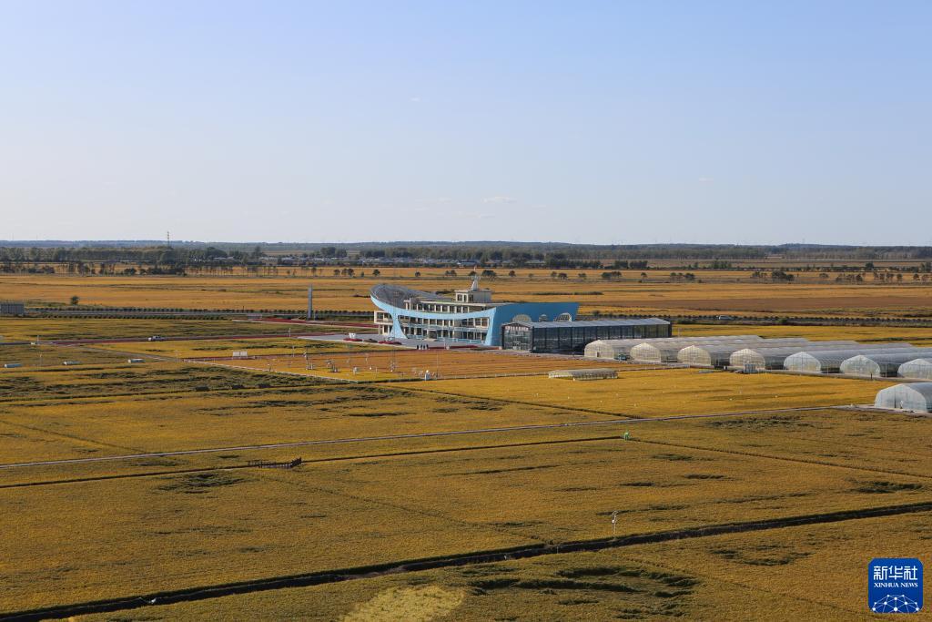 這是9月22日在富錦市拍攝的現代農業(yè)萬(wàn)畝水稻科技示范園實(shí)驗基地及周邊田地。