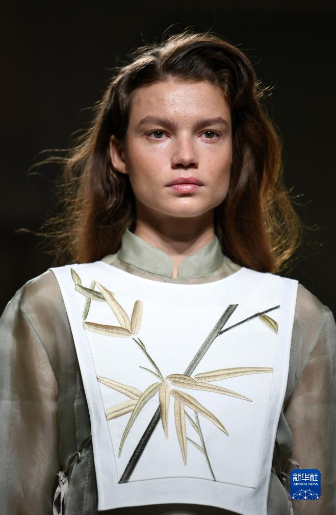 9月24日,模特在意大利米蘭時(shí)裝周上展示含有貴州苗繡元素的設計時(shí)裝。