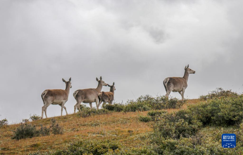 9月24日,幾只西藏馬鹿出現在位于西藏自治區山南市桑日縣的貢德林草原上。