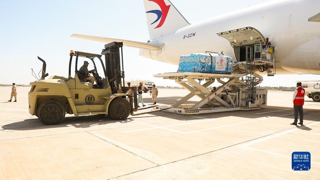 9月24日,中國政府援助利比亞緊急人道主義物資運抵利比亞?wèn)|部班加西機場(chǎng)。