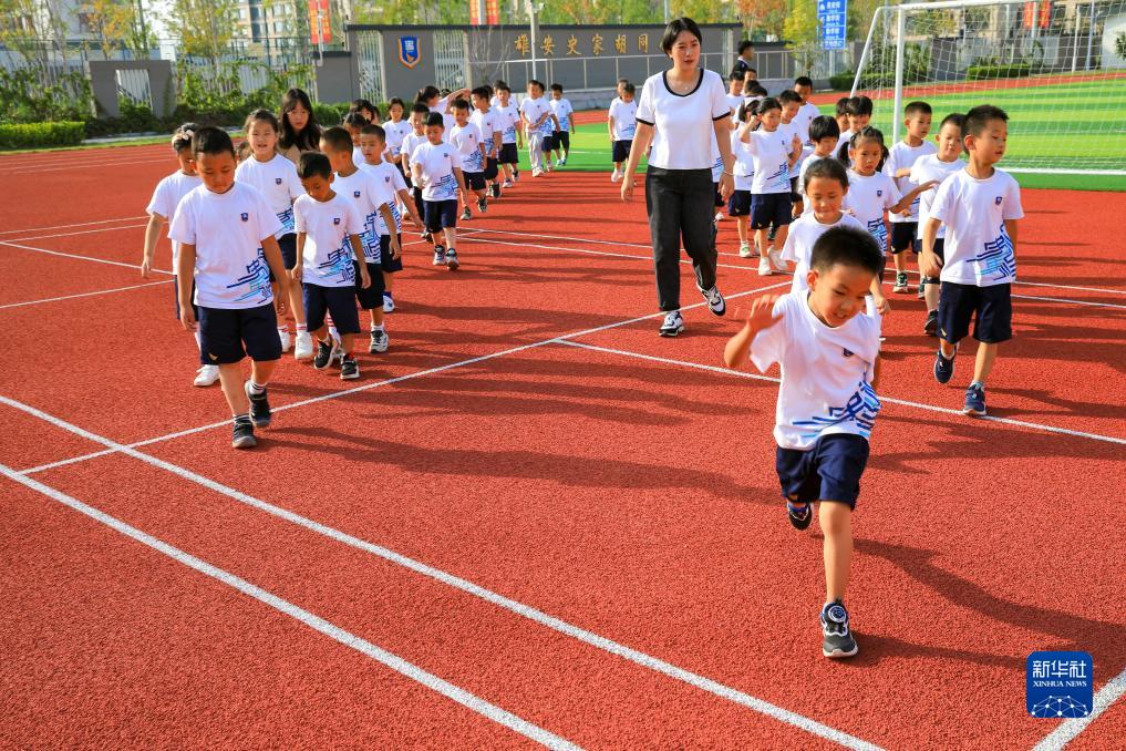 雄安史家胡同小學(xué)的學(xué)生們在操場(chǎng)上活動(dòng)(9月18日攝)。