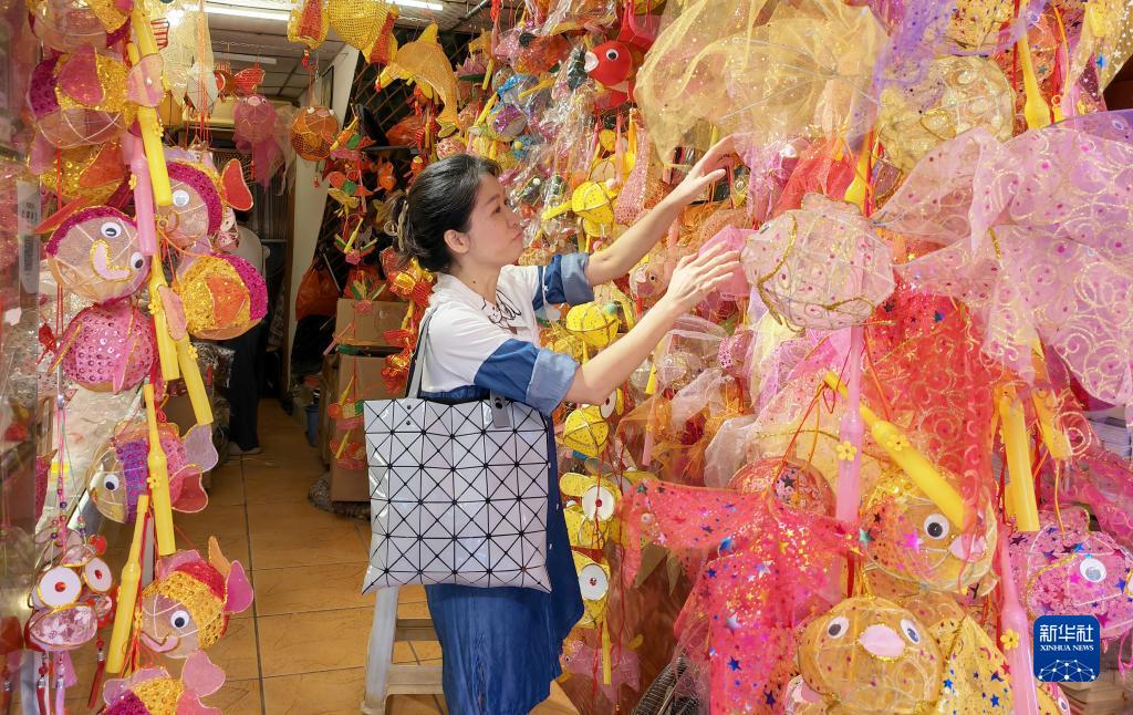 隨著(zhù)中秋佳節日益臨近,在廣州市光孝路一帶,商鋪掛滿(mǎn)了各式傳統手工燈籠,吸引不少市民前來(lái)觀(guān)賞選購。