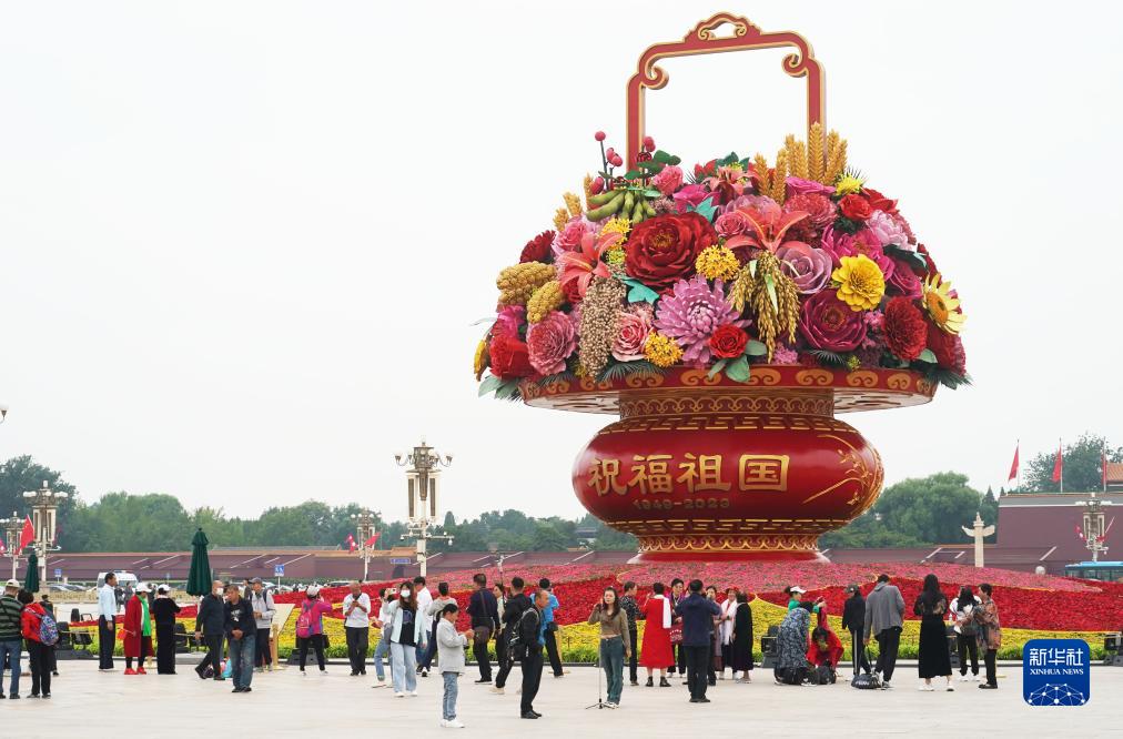 這是9月25日在北京天安門(mén)廣場(chǎng)拍攝的“祝福祖國”巨型花籃。