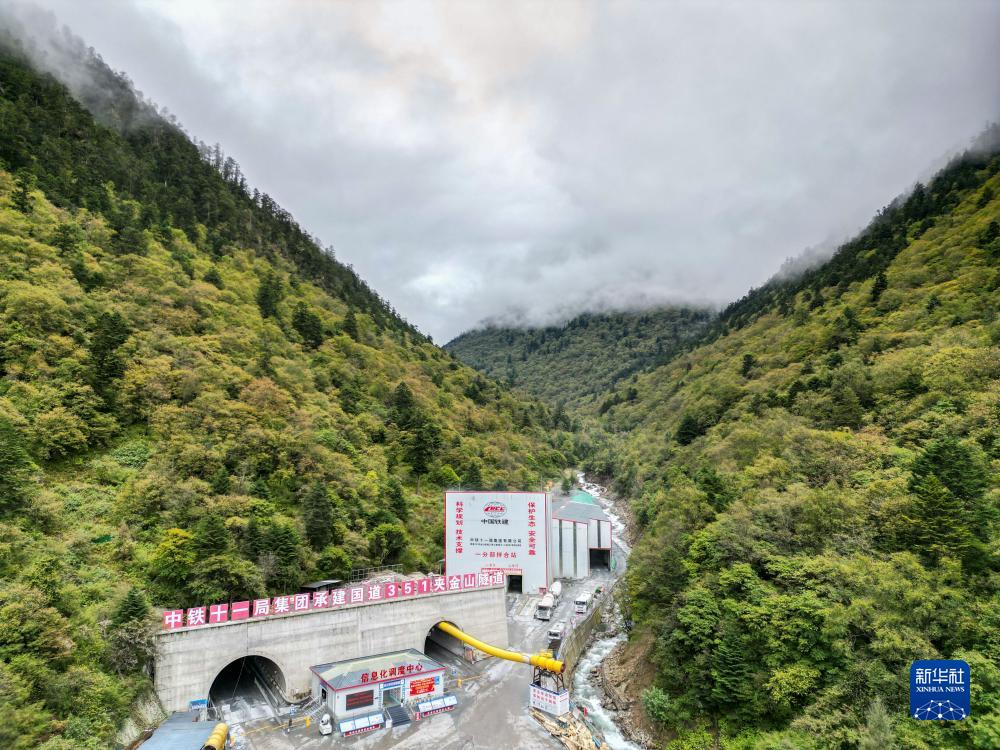 這是9月25日在四川省寶興縣拍攝的夾金山隧道口(無(wú)人機照片)。