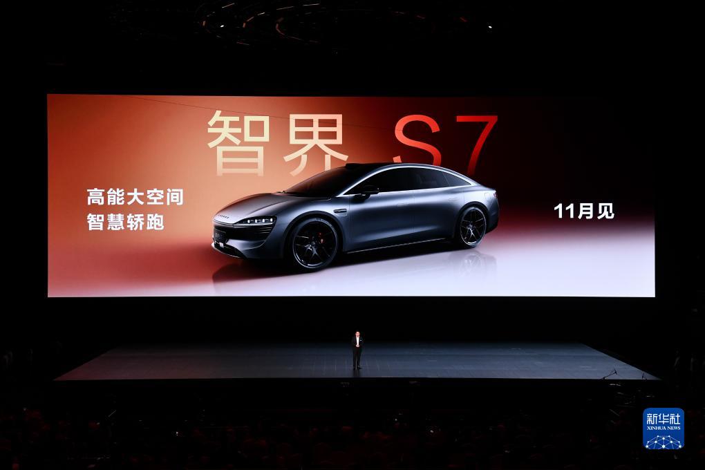 9月25日,華為秋季全場(chǎng)景新品發(fā)布會(huì )上展示智界S7汽車(chē)。