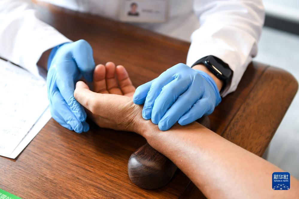 9月4日,郭鈞泯在深圳市中醫藥傳承發(fā)展研究院為病人把脈。