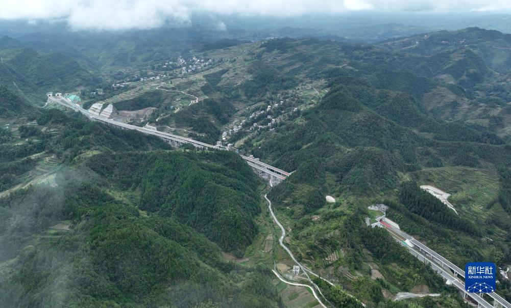 這是9月25日拍攝的湖北省恩施土家族苗族自治州境內的張南高速湖北宣咸段(無(wú)人機照片)。