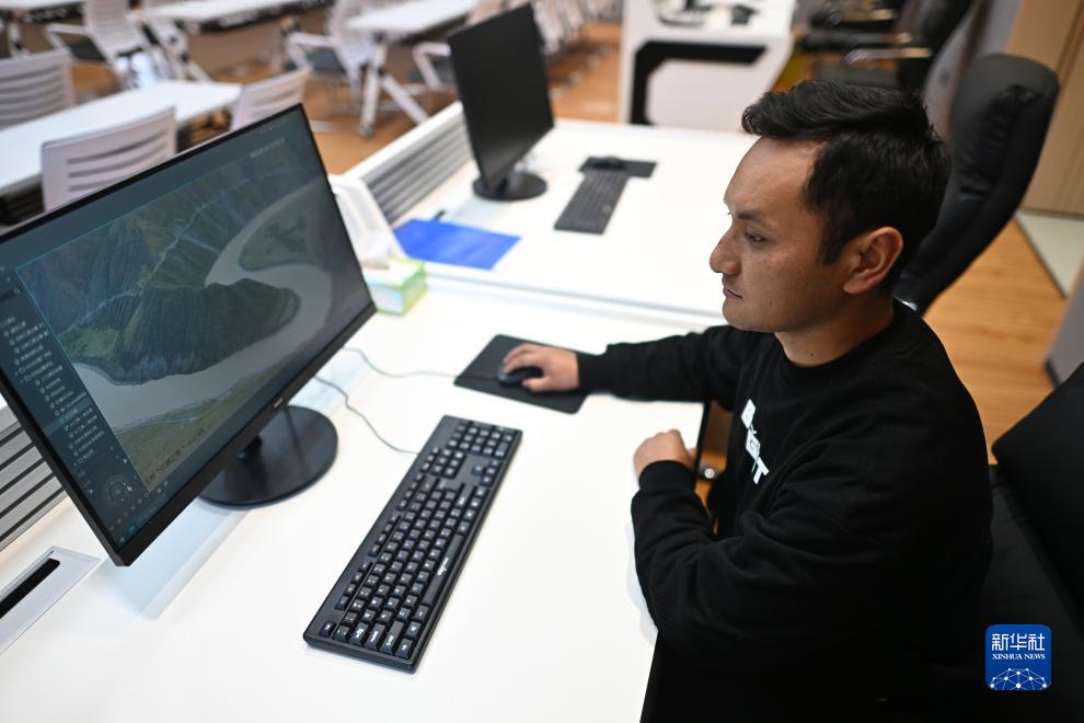 9月22日,玉樹(shù)州生態(tài)環(huán)境局宣教信息科工作人員曲達朋措展示長(cháng)江源流域當曲的實(shí)時(shí)監控畫(huà)面。