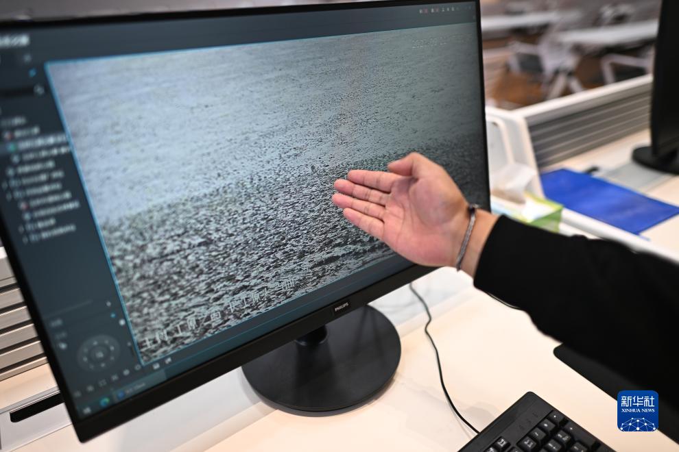 9月22日,玉樹(shù)州生態(tài)環(huán)境局宣教信息科工作人員曲達朋措展示長(cháng)江源流域當曲的實(shí)時(shí)監控畫(huà)面。