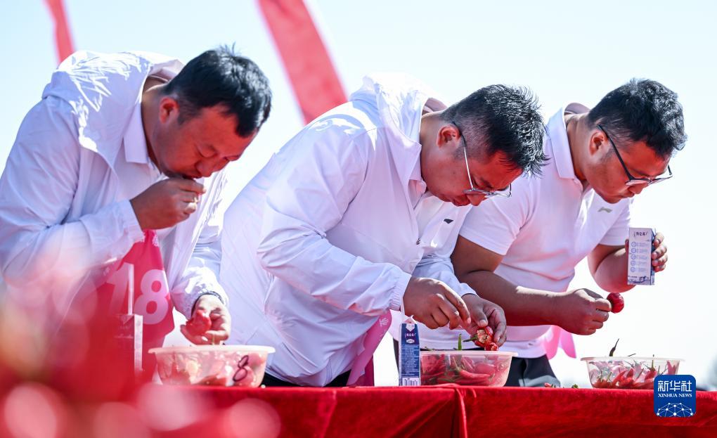 當日,內蒙古鄂爾多斯市杭錦旗巴拉貢鎮舉行辣椒豐收節慶?;顒?dòng)。此次活動(dòng)包含文藝匯演、特色農產(chǎn)品展銷(xiāo)、辣椒采摘比賽、吃辣椒大賽等多項內容,吸引眾多群眾前來(lái)參觀(guān)、體驗。