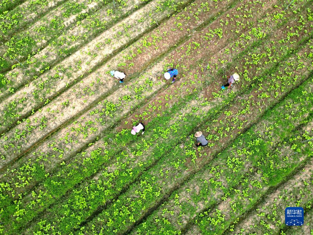 9月26日,村民在貴州省黔東南苗族侗族自治州榕江縣車(chē)江壩區蔬菜基地進(jìn)行田間管理(無(wú)人機照片)。