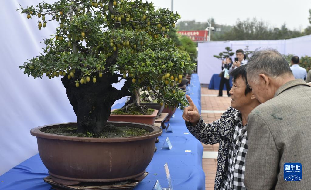 9月26日,觀(guān)眾在鄢陵縣花博公園參觀(guān)盆景。