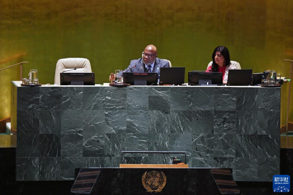 9月26日,在位于紐約的聯(lián)合國總部,第78屆聯(lián)大主席弗朗西斯(左)宣布聯(lián)合國大會(huì )一般性辯論閉幕。