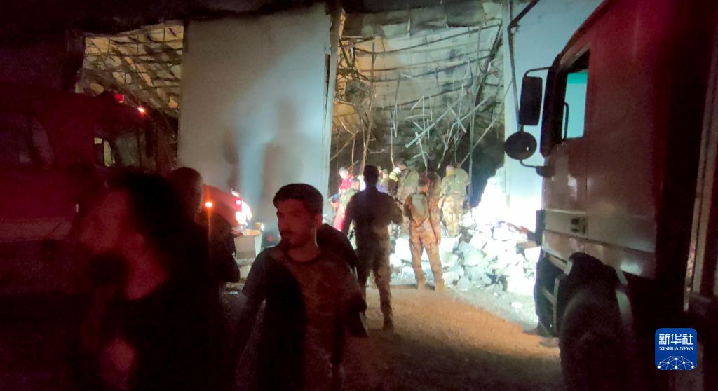 9月27日,伊拉克民防與安全人員在伊北部尼尼微省哈姆達尼耶鎮的火災現場(chǎng)工作(手機拍攝)。