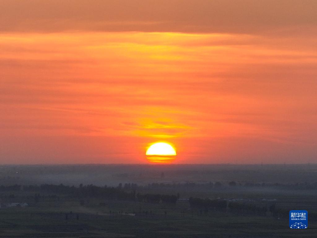 烏梁素海落日美景(無(wú)人機照片,9月13日攝)。