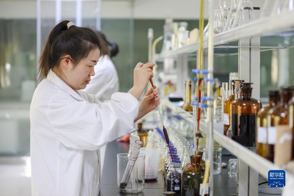 9月26日,在新疆吐魯番市鄯善縣樓蘭酒莊,葡萄酒檢驗員在分析化驗葡萄酒的常規理化指標。