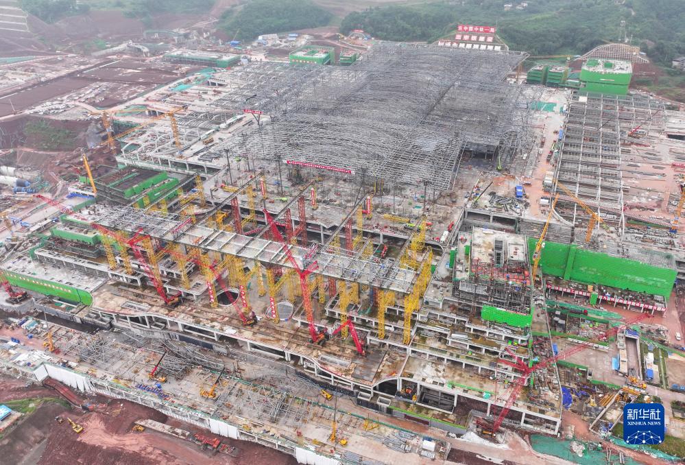 這是9月27日拍攝的重慶東站站房及配套綜合交通樞紐工程施工作業(yè)現場(chǎng)(無(wú)人機照片)。