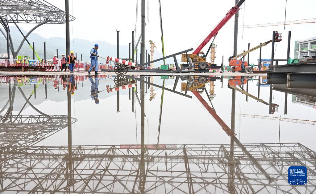 9月27日,中鐵建工工人在重慶東站站房及配套綜合交通樞紐工程二標段項目作業(yè)。