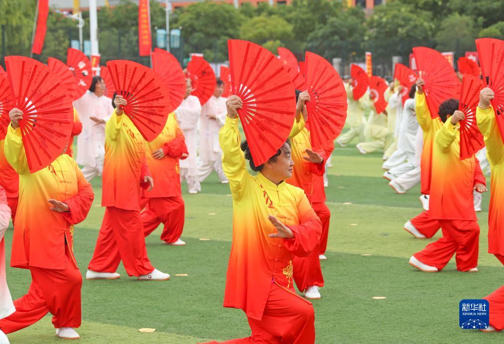 9月27日,人們參加河北省蔚縣“迎國慶 慶中秋”千人太極集中展演活動(dòng)。
